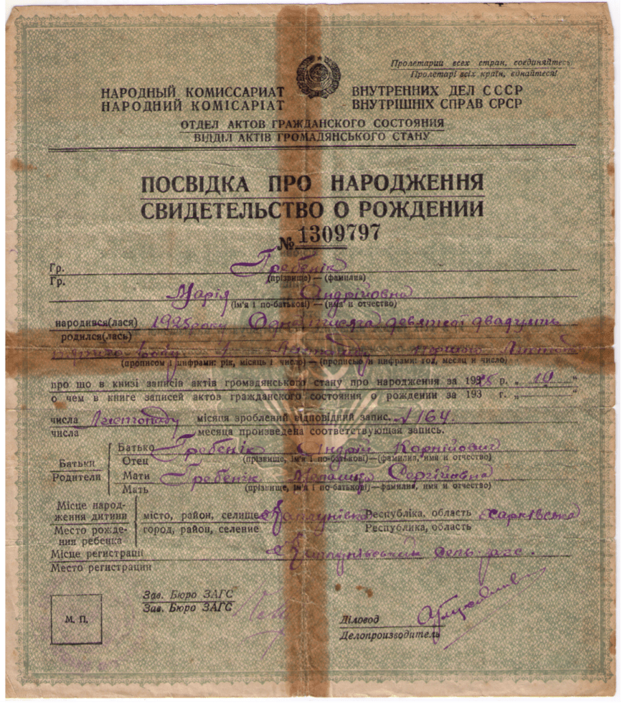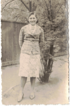 Maria in haar wit kleedje in 1944. Het is dan toegestaan om het lager te verlaten. Een Vlaamse amateurfotograaf vraagt aan de vrouwen om te poseren voor zijn camera. Voor de gelegenheid trekt Maria haar beste kleren aan: het wit kleedje en de witte muiltjes uit Oekraïne. Het jasje was een afdankertje van de Duitse kokkin, die de zieke Maria had verzorgd tijdens haar pneumonie. Natuurlijk draagt ze hier haar verfoeide OST-embleem niet.